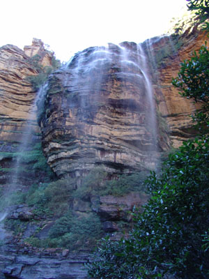 Auf unserer Wanderung zu den Wentworth Falls begegneten wir in den ersten zwei Stunden kaum einer Menschenseele. Wir hatten die atemberaubenden, rötlichen, manchmal überhängenden Felsformationen, den Blick in die tiefen Schluchten und die schmalen, teils eingewachsenen Wanderwege beinahe für uns alleine.