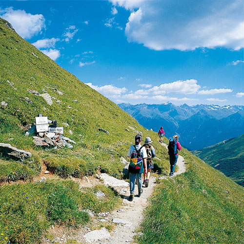Bleiben wir im Sommer: Von den drei Orten aus bringen insgesamt sieben Aufstiegshilfen den Gast nach oben. Und dort entfaltet sich die ganze Schönheit der Tiroler Westalpen. Zahlreiche Wege stehen dem Wanderer offen, und auf einen sei ganz besonders hingewiesen: den Panorama-Genussweg. Von Serfaus aus fährt man mit der Komperdell-Gondelbahn zur Mittelstation auf 1980 Meter und wandert dann auf einem breiten, gut ausgebauten Weg ohne große Höhenunterschiede Richtung Fiss zur Möseralm (1812 Meter). Das herrliche Panorama der 3000er ist eine Augenweide.