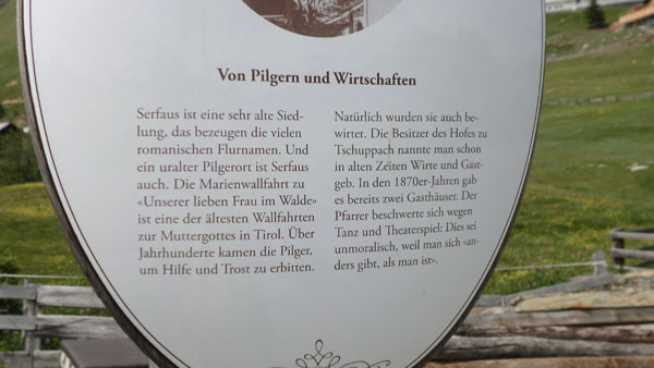 Hinweistafeln bringen dem Gast die Vergangenheit von Serfaus in kurzer und sachlicher Form näher. – Foto: Dieter Warnick