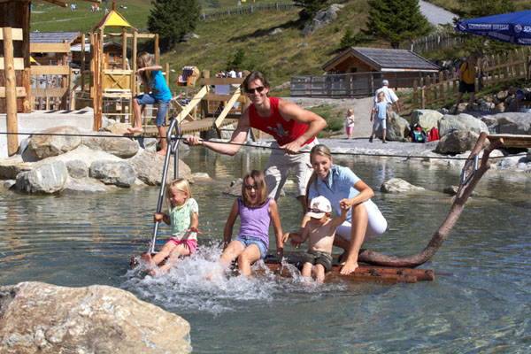 Nur einen kurzen Spaziergang von der Mittelstation Komperdell entfernt liegt das Areal des interaktiven Wasserspielparks Murmliwasser. – Foto: www.foto-mueller.com