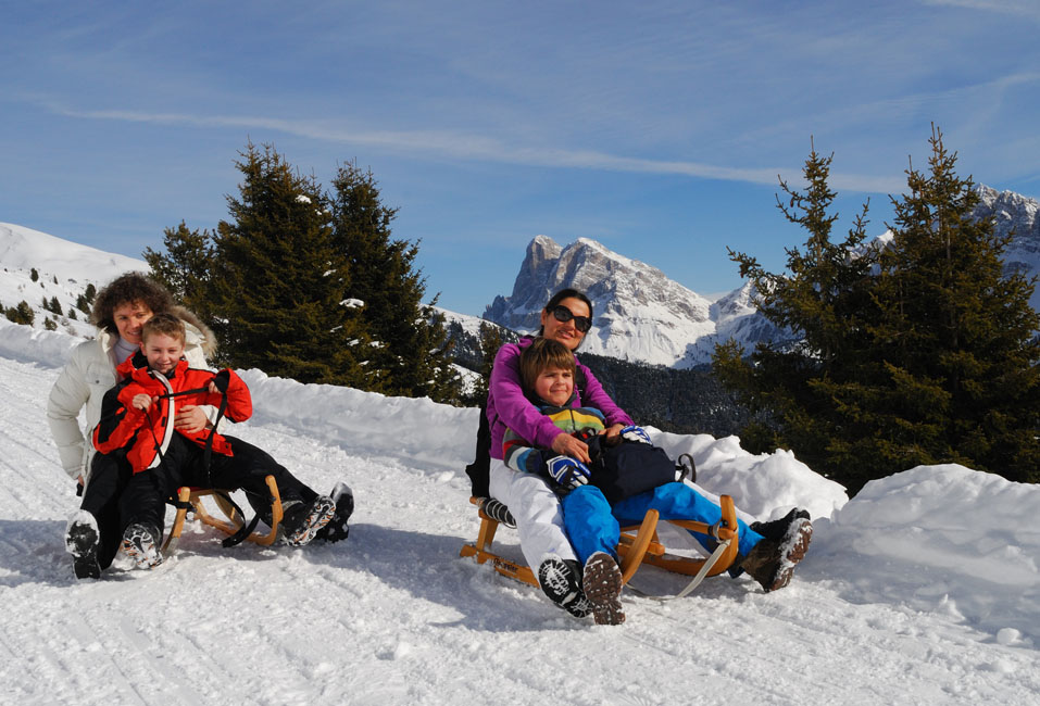 Doch keine Bange: Jeder einigermaßen geübte Brettlfan kann hinunter wedeln; die Markierung “schwarz” bezieht sich nicht auf die Schwere der Abfahrt, sondern auf die Länge – weil so manchen die Kondition im Stich lassen könnte. Man soll die neun Kilometer ja auch nicht in einem Zug bis ins Tal rasen. Dafür ist der tolle Ausblick auf die Schnee bedeckten Gipfel und auf Brixen, das wie mit Holzklötzen hingesetzt scheint, viel zu reizvoll.