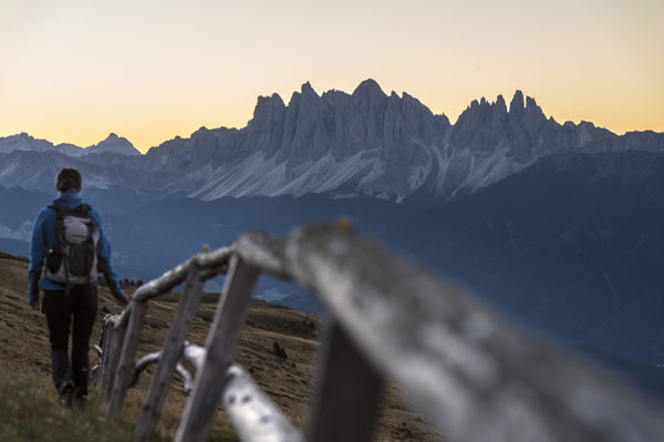 Auch gemeinsam mit Naturlehrer und Freigeist Stefan Braito inhalieren Wanderer den Frühling in den Dolomiten. Die Atemwanderung beginnt am Gebirgsbach in St. Magdalena/Villnöss und führt zu einem energiegeladenen Kraftplatz mit grandiosem Ausblick auf den gesamten Dolomitenbogen und zum Heiligen Hügel mit dem St. Magdalena-Kirchlein im Villnösser Tal. Die vielen „Südtirol Balance“-Aktivitäten in den südlichen Eisacktaler Dolomiten bringen „Zeit für mein Ich“ – und damit Körper und Seele in Gleichklang.