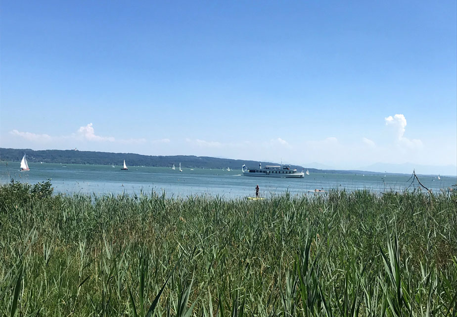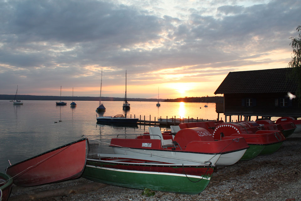 Durch das geöffnete Schlafzimmerfenster tönt heiser und langgezogen das Tuten des Schaufelraddampfers, der am Landungssteg in Herrsching ablegt. Wen hält es nach diesem Weckruf aus der Ferne noch in den Federn? Die wenigsten, wenn man dem lebendigen Treiben nach urteilt, das schon früh am Morgen an der langen Seepromenade herrscht. Die Menschen zieht’s ans Wasser, egal, ob zum „Sonnengruß“ auf dem Steg, zum Schwimmen unter der kräftiger werdenden Sonne oder zum Frühstückspicknick auf den Uferwiesen.