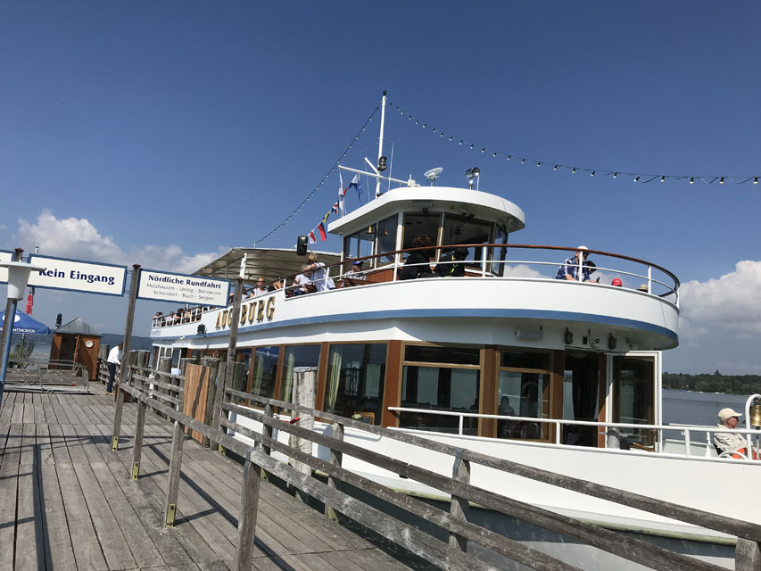 Ins Schwärmen geraten auch Dillers Passagiere während der Überfahrt. Sobald die „Augsburg“ die Herrschinger Bucht verlässt, weitet sich der Blick, wandert übers Wasser und geht bis zur Zugspitze am Horizont. Über 15 Kilometer lang ist der See, der wie alle großen Gewässer der Region Starnberg-Ammersee durch das Abschmelzen des Loisachgletschers entstanden ist.