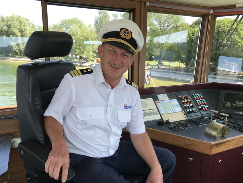 Auch Helmut Diller, seit bald 30 Jahren Ammersee-Kapitän, zählt zu Matos Kundschaft. Bis zu acht Stunden verbringt der fast 60-Jährige täglich auf dem Wasser und liebt den See in (fast) jeder Sekunde. „Nur wenn zu viele Segler, Surfer, Schwimmer oder Stand-Up-Paddler draußen sind, kommt Stress auf“, sagt Diller. An diesem strahlenden Vormittag durchmisst der freundliche Kapitän indes herrlich entspannt auf der „Augsburg“ den glänzenden See, von Stegen, einem Ortsteil der Gemeinde Inning (4850 Einwohner) im Norden bis Herrsching im Südosten. Die schönsten Momente erlebt der gelernte Schlosser, der sich nach drei Jahrzehnten bei der Bayerischen Seenschifffahrt keinen anderen Arbeitsplatz als die Führerhäuschen der Ammersee-Flotte vorstellen kann, meist in der Frühe: „Wenn es nur so kleine Löcher im Nebel gibt, wie neulich, als nichts außer dem Kirchturm von Dießen zu sehen war. Oder wenn die Sonne ganz herauskommt und die Bergspitzen von oben nach unten immer heller werden…“