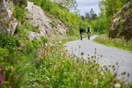In Waldkirchen startet eine ideale Graveltour Richtung Haidmühle auf dem Adalbert-Stifter-Radweg. Leicht bergan tragen einen die Räder zum Erlauzwieseler Stausee. Abwechslungsreich durch Waldpassagen und über Anhöhen, vorbei an Wiesen und Weiden führt die Graveltour Richtung Jandelsbrunn. Weithin grüßt die Kirche S. Ägidius am Wollaberg. Ein kurzer Abstecher lohnt sich, denn auf der Anhöhe eröffnet sich ein weiter Blick über das Grüne Dach Europas, wie der Bayerische Wald und Böhmerwald genannt werden. Die Landschaft ist in allen Grünnuancen gesprenkelt. Dunkelgrüne Waldlandschaften, gelbblühende Wiesen, weißblühende Hecken in den Feldrainen.