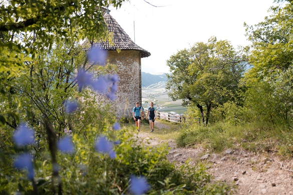 Wanderer auf dem Weg zum Peterköfele (Kirchlein St. Peter), dem Wahrzeichen der Stadt. – Foto: TV Leifers / Monsorno