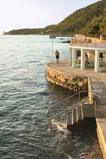 Ziemlich genau vier Kilometer von der Piazza della Libertá entfernt befindet sich Barcola, ein Triester Stadtteil mit Stadt-Strand auf einer Promenade. – Foto: Maria Kampp