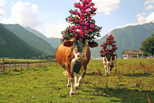 Wenn sich die Sommersaison ihrem Ende zuneigt, dann werden die Kühe prunkvoll geschmückt und von den Almen heruntergebracht.