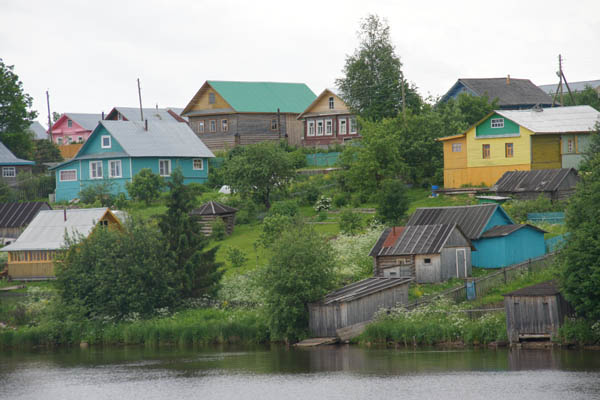 Bunte Holzhäuser: So leben die Russen an der Wolga. Foto: Kathrin Schierl